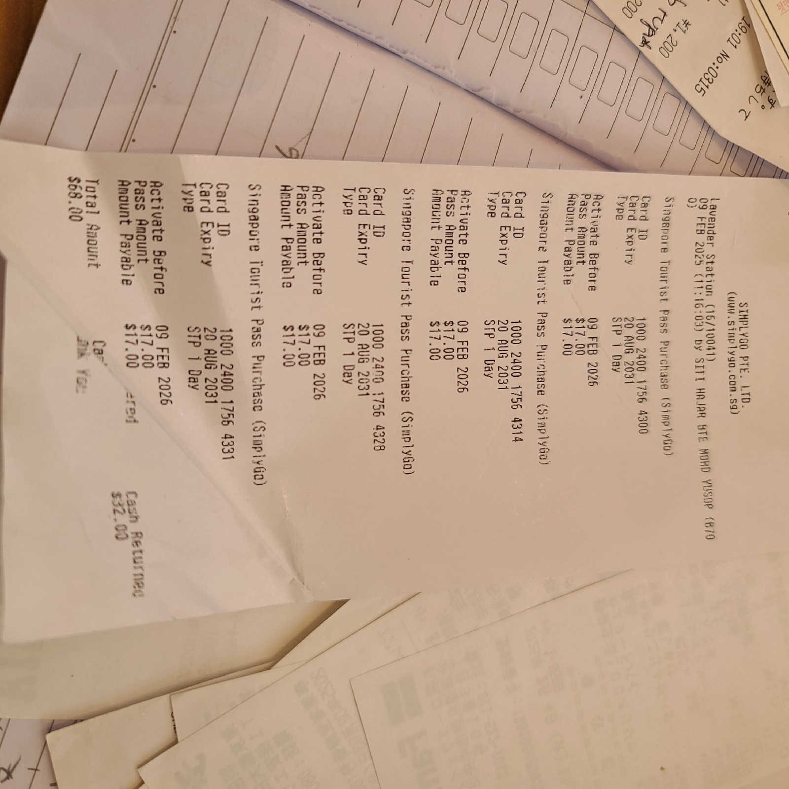 11. Singapore Tourist Pass 1 day 17 $sg x 4 = 68$sg alias kali 12500 = 850.000